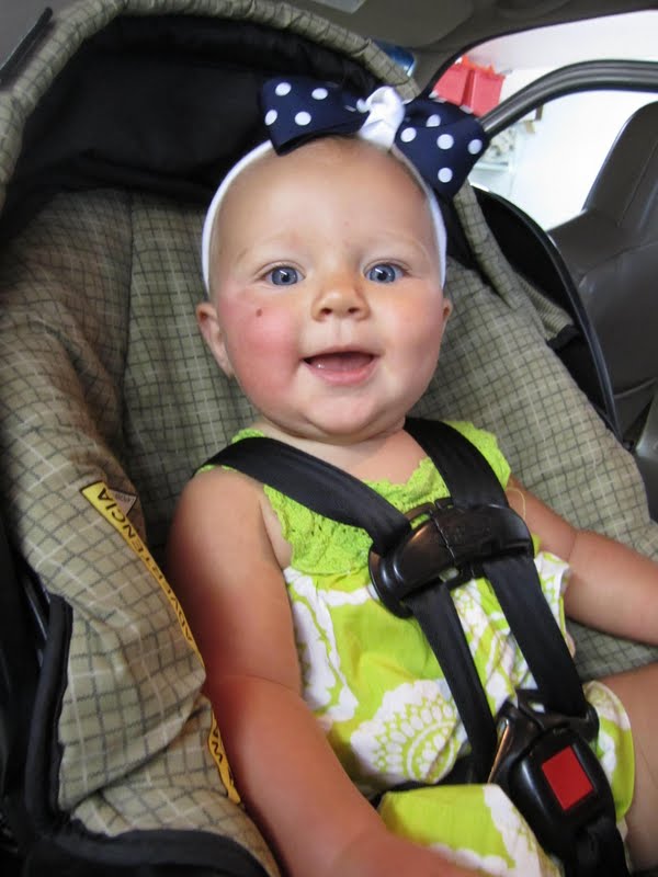 "hug", "up", "Jock" {the horse}, "go", "tracta", "mama", "golf cart", "agua", "water" or "wa wa", and please {in sign language}. She loves telling us what tractors and horses say. She raises her arm or arms and starts bouncing when she hears music. She has taken a couple steps and would probably walk with a little more encouragement. The girl is constantly rearranging the kitchen chairs! :) She is so fun; we really, really adore her!